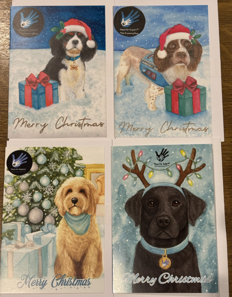 This year we have 4 locally designed christmas cards available featuring Lucy, Beau, Mr Darcy and Uno